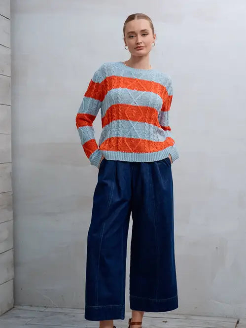 Effortlessly chic and oh-so-comfy, this Blue Sky Lightweight Sweater brings breezy style to your everyday rotation. Featuring a charming striped pattern and delicate crochet knit design, it's perfect for layering or wearing solo. The relaxed round neckline and long sleeves offer that cozy-without-the-bulk vibe you've been craving. Lightweight enough for spring strolls or air-conditioned adventures, this sweater is your new go-to for looking put-together without trying too hard.