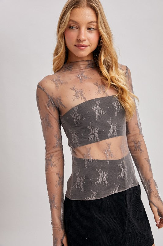 Elevate your layering game with this dreamy floral embroidery lace mesh top! Featuring delicate floral detailing on sheer mesh fabric, a chic high neckline, and long sleeves with functional thumbholes, it's the perfect piece to add dimension and texture to any outfit. The unlined, sheer construction makes it ideal for styling over your favorite basics or camis. Dress it up or down—this versatile top is your new go-to for effortless, feminine flair.