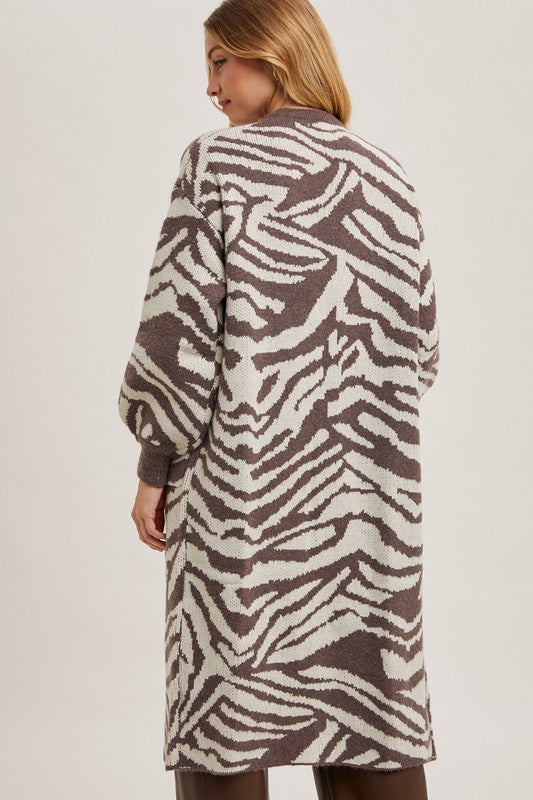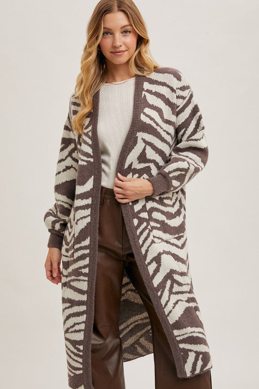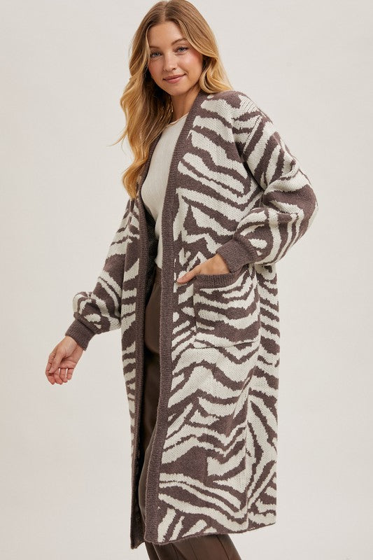 Strut your stuff in this Brown Zebra Print Cardigan—a wild wardrobe essential that's equal parts fierce and cozy. The longline cut hugs your frame in all the right ways, while the open front design lets you layer like a pro. Soft knit fabric keeps you toasty without the bulk, making it your go-to for those "I want to look amazing but feel amazing too" days. Throw it over literally anything—jeans, dresses, even your favorite band tee—and watch heads turn. This cardigan doesn't just keep you warm; it makes a statement.